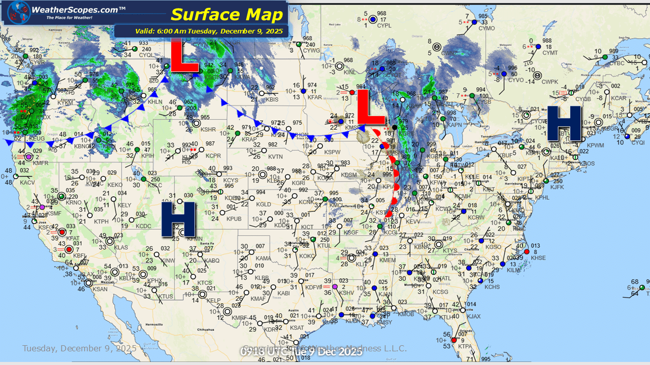This morning we are seeing another clipper come through the Upper Great Lakes as it moves into the Northeast later today. Tonight yet another clipper will come through the Great Lakes and Northeast into tomorrow. Clipper snow will be the theme for the next 10 days or so with almost daily chances for snow to come through the Plains and into the Northeast. The Pacific NW still dealing with an ongoing atmospheric river just bombarding the area with rain and flooding. Warmer temps today in the Southern Plains and into the Southwest.