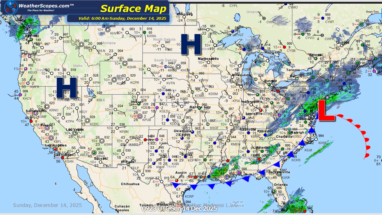 This morning, we are seeing some snow showers across portions of the Northeast from Maine to Philadelphia. Some light accumulations today mixed with some rain as well further south through the Mid-Atlantic states. Brutal cold across the Plains and Midwest this morning with temps in the single digits and some areas seeing temps below zero. Wind chills will also make it feel like 25-30 below. The Great Lakes will also see some lake-effect snows today, with accumulations of 4-8”.