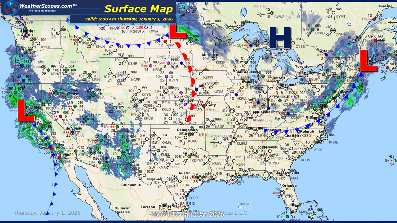 Happy New Year! This morning, we are seeing another clipper come through the Great Lakes into the Northeast, bringing a coating to the area and some higher amounts in areas near the Great Lakes. Some lake-effect snows will also linger around today as well, increasing snow amounts. Showers and thunderstorms continue to impact Southern California and increase the risk of the ongoing flooding issue, and some of those storms could be gusty at times. Showers will also impact the Pacific NW today as well. The Rockies and Sierra’s will see some snow today in the higher elevations. The cold still impacting the Northern Plains through the Great Lakes and into the Northeast, as temperatures are in the single digits in certain areas of the Plains.