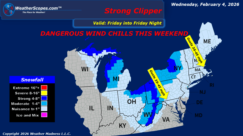 This morning, scattered showers are developing ahead of a cold front across the Southeast, bringing cooler conditions to the region by Thursday. Light snow showers are expected in the Great Lakes and Northeast, with minor accumulations possible, generally a light coating. Later tonight, rain will transition to snow extending from eastern Tennessee/Kentucky, into North Carolina, and the Virginias. Snow accumulations in these areas are expected to range from a coating to around 2 inches. Looking ahead to Thursday and Friday, a clipper system will move through the Great Lakes on Thursday and again on Friday, producing snowfall totals of approximately 1 to 3 inches. The Friday system is also expected to impact portions of the Northeast.