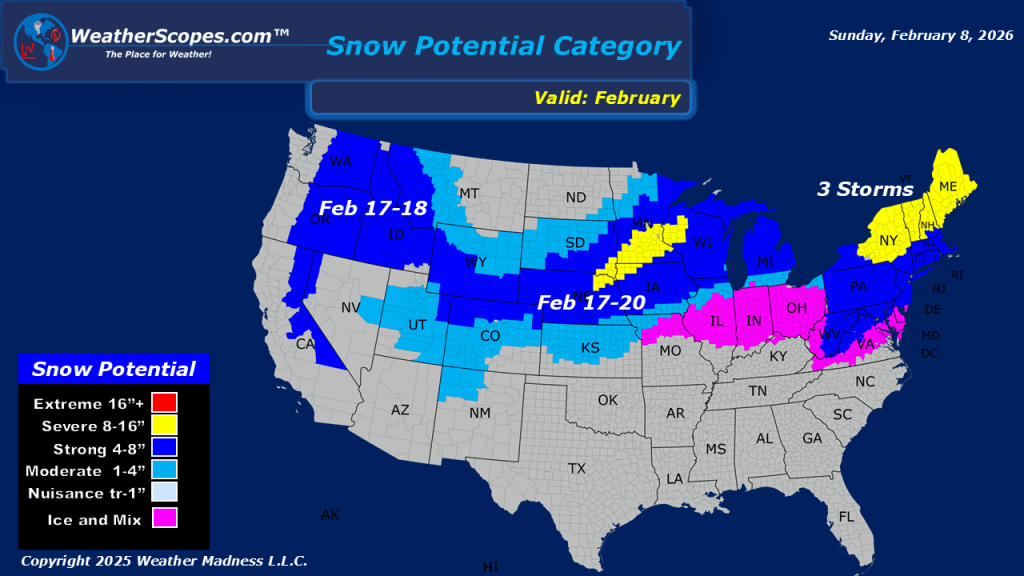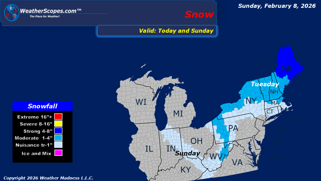This morning, we are seeing some light snow come through the Great Lakes and into the Ohio Valley. Accumulations look to be around a coating to 2”. In the Pacific NW showers will come through the area and also bring some snow to the Northern Rockies. The Northeast still dealing with the cold this morning as many areas are in the single digits and some below zero. Oklahoma into Texas could see some passing showers today.