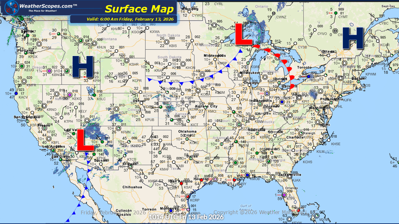 This morning, not a whole lot going on. The Northeast still dealing with some cold temperatures with areas in the teens and single digits. A clipper will come through portions of the Northeast later tonight and into tomorrow bringing a coating of snow. In the Southwest some showers will come through the area, bringing snow to the higher elevations in The Rockies. The rain will move across Texas setting the stage for some severe weather tomorrow. Some milder weather today out across the Plains and into the Midwest. The majority of the warm continued to stay to the south, but areas in the Plains and Midwest will see temperatures in the 40s and some may see the 50s today. These milder temps will continue for the next few days, which is a nice change of pace from the cold and snowy conditions.