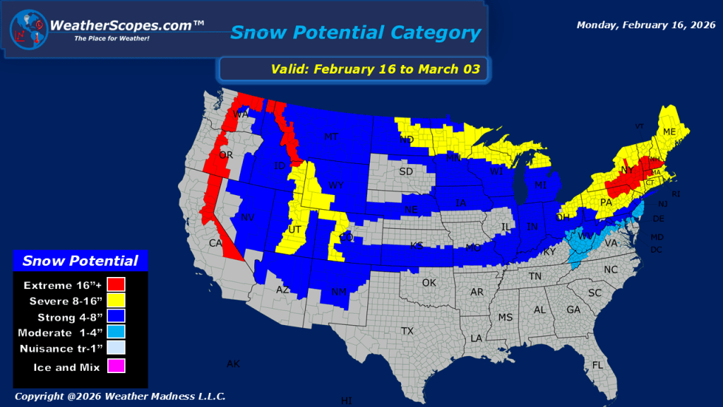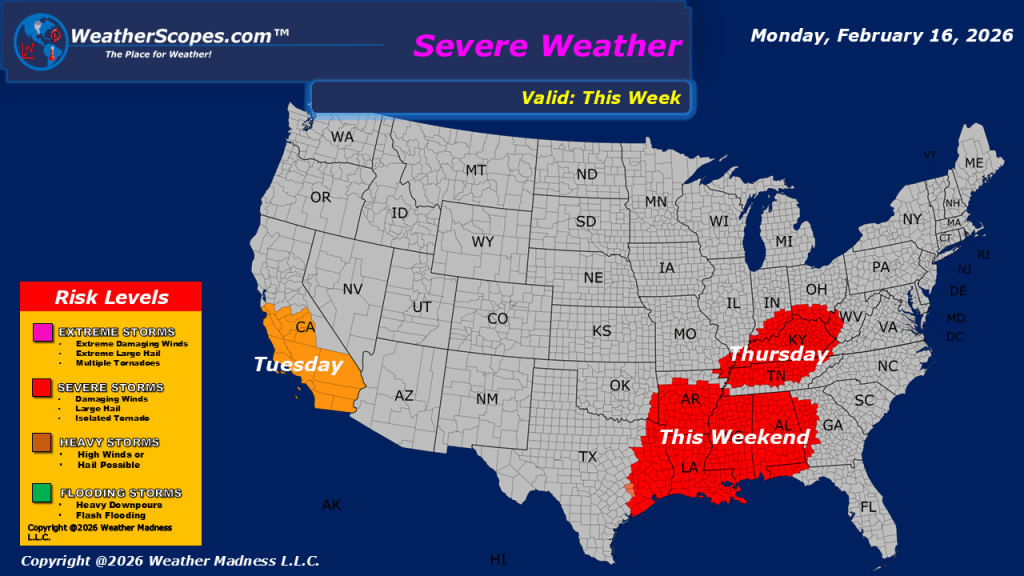 This morning, we are seeing showers coming through California and the Pacific NW. The rain will impact these areas throughout the week, with California seeing the potential for some localized flooding. With the wet and stormy conditions out in the west, The Rockies and Sierras will see several inches of snow this week. Much of the US is experiencing some milder weather. Areas in the Plains and Midwest today will see temps in the 50s and possibly into the 60s. Looking ahead, a stormy week is on tap for the Upper Plains, Upper Great Lakes, and into parts of the Northeast with rain, snow, and some mixed precipitation.