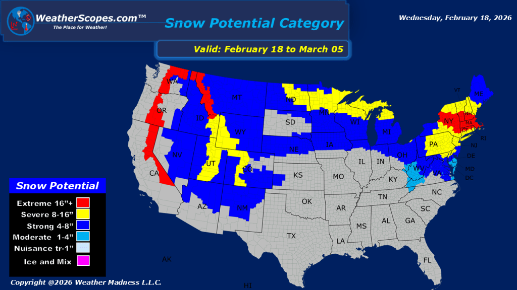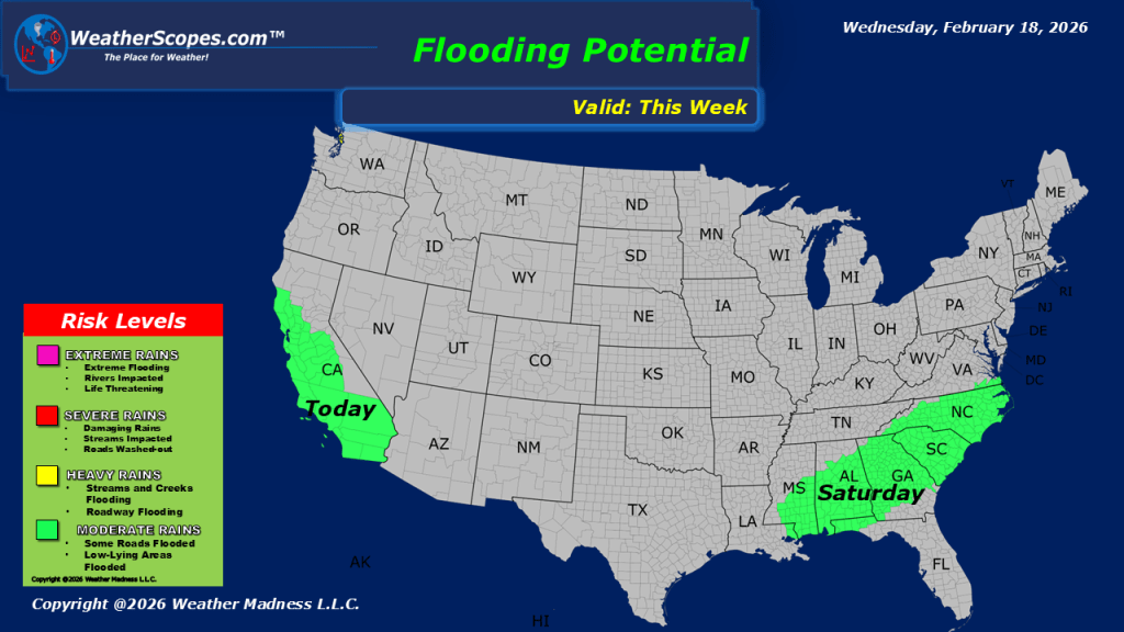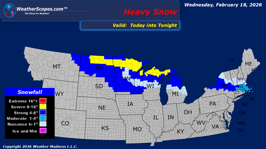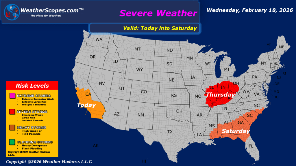 This morning, a dynamic weather pattern is unfolding across the United States as a strong storm system tracks from the Northern Plains into the Upper Great Lakes. This system is producing a wide range of precipitation types, with snow falling on the colder northern side, mixed precipitation in transition zones, and steady rain across areas farther south. Gusty winds are also accompanying the system, creating reduced visibility in areas of heavier snow and adding to travel concerns. As the storm continues its eastward progression, it is expected to reach parts of the Northeast later tonight, bringing additional precipitation. The western United States remains unsettled. An active weather pattern continues to impact California, where periods of heavy rain and gusty thunderstorms are expected throughout the day. With saturated ground in some locations, there is an elevated risk for localized flooding, particularly in low-lying and poor-drainage areas. Residents are encouraged to stay alert to changing conditions. In the higher elevations of the Sierra Nevada and the Rockies, snow and strong winds are combining to create blustery and occasionally hazardous mountain conditions. Reduced visibility, drifting snow, and difficult travel are likely in exposed areas and over mountain passes. Across the eastern portion of the country, milder air remains in place for now, providing a brief break from winter’s chill. However, this moderation is temporary. A return to colder temperatures is expected this weekend across much of the East, signaling a shift back toward more seasonable winter conditions.