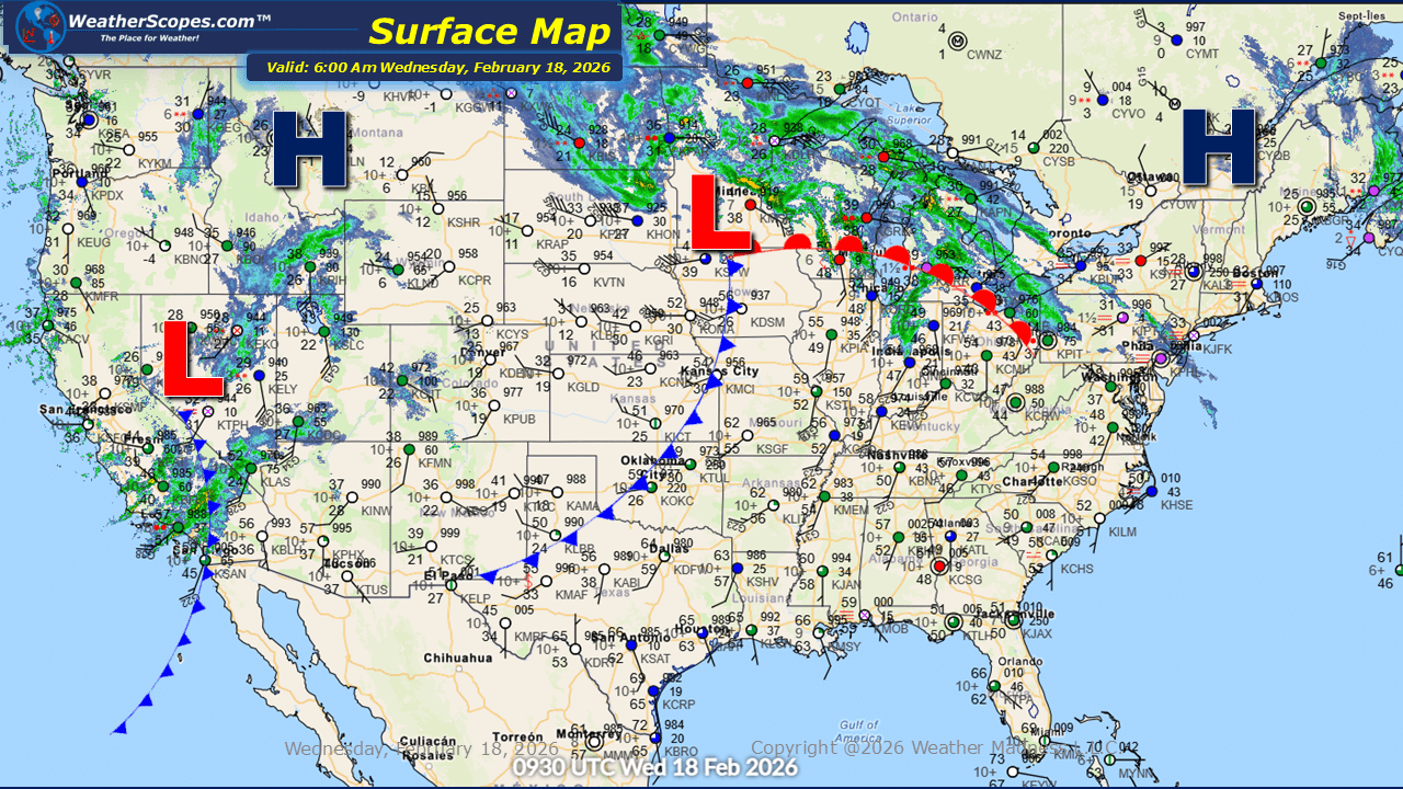 This morning, a dynamic weather pattern is unfolding across the United States as a strong storm system tracks from the Northern Plains into the Upper Great Lakes. This system is producing a wide range of precipitation types, with snow falling on the colder northern side, mixed precipitation in transition zones, and steady rain across areas farther south. Gusty winds are also accompanying the system, creating reduced visibility in areas of heavier snow and adding to travel concerns. As the storm continues its eastward progression, it is expected to reach parts of the Northeast later tonight, bringing additional precipitation. The western United States remains unsettled. An active weather pattern continues to impact California, where periods of heavy rain and gusty thunderstorms are expected throughout the day. With saturated ground in some locations, there is an elevated risk for localized flooding, particularly in low-lying and poor-drainage areas. Residents are encouraged to stay alert to changing conditions. In the higher elevations of the Sierra Nevada and the Rockies, snow and strong winds are combining to create blustery and occasionally hazardous mountain conditions. Reduced visibility, drifting snow, and difficult travel are likely in exposed areas and over mountain passes. Across the eastern portion of the country, milder air remains in place for now, providing a brief break from winter’s chill. However, this moderation is temporary. A return to colder temperatures is expected this weekend across much of the East, signaling a shift back toward more seasonable winter conditions.