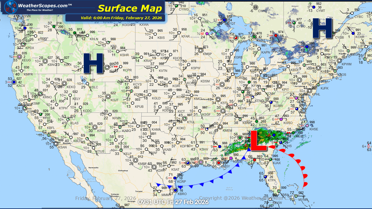 This morning, we are seeing some rain showers come through the Carolinas and stretching back along the Gulf Coast. A notable warm-up is underway. Some milder weather is settling in today across much of the Plains into the Midwest and Northeast. Portions of the Plains will see temperatures climb into the 70s, an impressive mark for late February. While it will not be quite as warm the farther north and east you go, much of the Midwest and Northeast will still enjoy readings that are well above seasonal averages. This brief blast of mild air, however, will be short-lived. The warmer pattern is expected to last roughly 24 hours before colder air begins to push back in. By the weekend, winter will reassert itself across the Northern Plains and the Great Lakes, where colder temperatures and accumulating snow are likely to return. Conditions remain relatively quiet across the country today, with no major storm systems causing widespread disruption. Looking ahead to the weekend, attention turns to a clipper system expected to move through the Upper Great Lakes and into the Northeast on Saturday into Sunday.