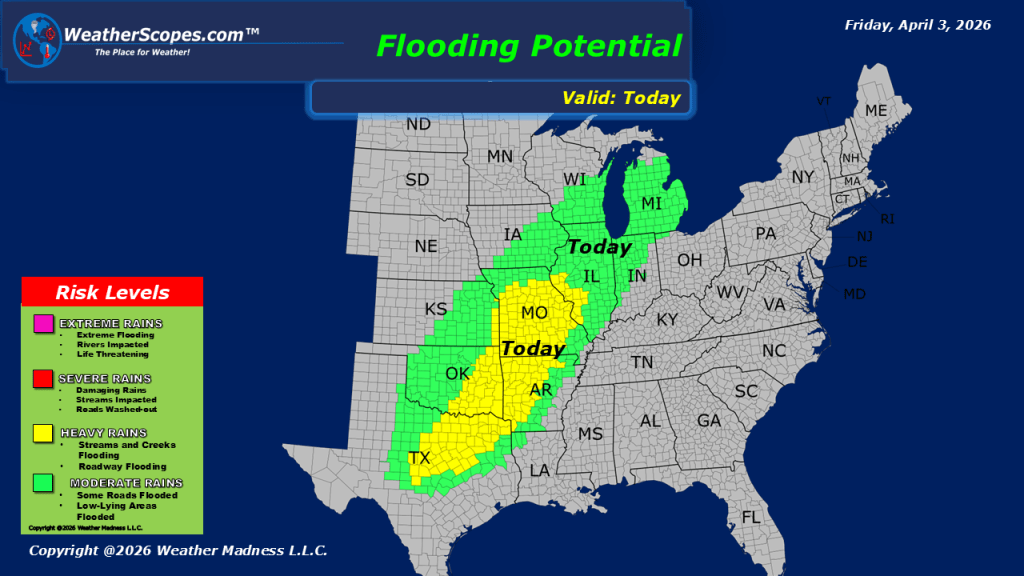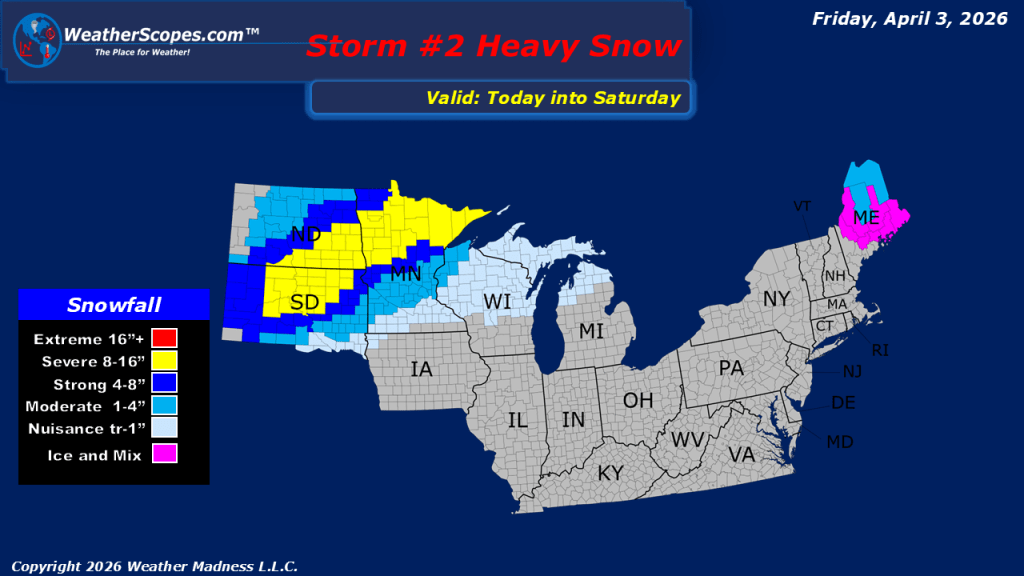 This morning, showers are moving through portions of the Northeast. As we head through the day, attention turns to the Midwest into parts of southern Texas, where another round of severe weather is expected to develop. These storms will have access to a warm, moist air mass, allowing for all hazards to be in play, including damaging winds, large hail, and the potential for tornadoes. We will also need to watch for some localized flooding with the amount of rain expected today. This will be an active setup that should be monitored closely, especially for those in vulnerable areas. Meanwhile, on the colder side of the system across the Northern Plains and into the Upper Great Lakes, winter is not quite finished. Snow is expected to continue in these regions, with accumulations generally in the 1 to 4 inch range. However, localized areas could exceed 4 inches, particularly where bands of heavier snow set up.
