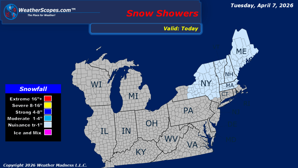 This morning, mixed precipitation is moving through western Iowa into parts of Missouri and Illinois. These areas may see light accumulations ranging from a coating up to around one inch of snow as the system progresses eastward. A clipper is tracking through the Upper Great Lakes into portions of the Northeast is bringing additional snowfall. Expected accumulations generally range from a coating to 2–3 inches across parts of upstate New York and into northern Vermont, New Hampshire, and Maine. Central portions of Maine could see higher totals exceeding three inches. Cooler conditions continue to impact the Northern Plains, Great Lakes, and Northeast. In contrast, warmer air remains in place across the southern and southwestern United States, maintaining a notable temperature divide. Wind will also be a factor today, particularly across the Northern Plains. Areas from Montana through the Dakotas and into parts of Wyoming can expect gusts between 35 and 45 mph. Scattered storms later today and into the evening hours could also impact Montana into the Dakotas, and the Four Corner States. Florida will see some scattered showers and thunderstorms throughout the day, accompanied by occasional gusty winds, which could get up to around 40mph.