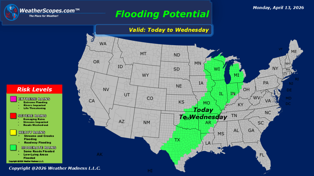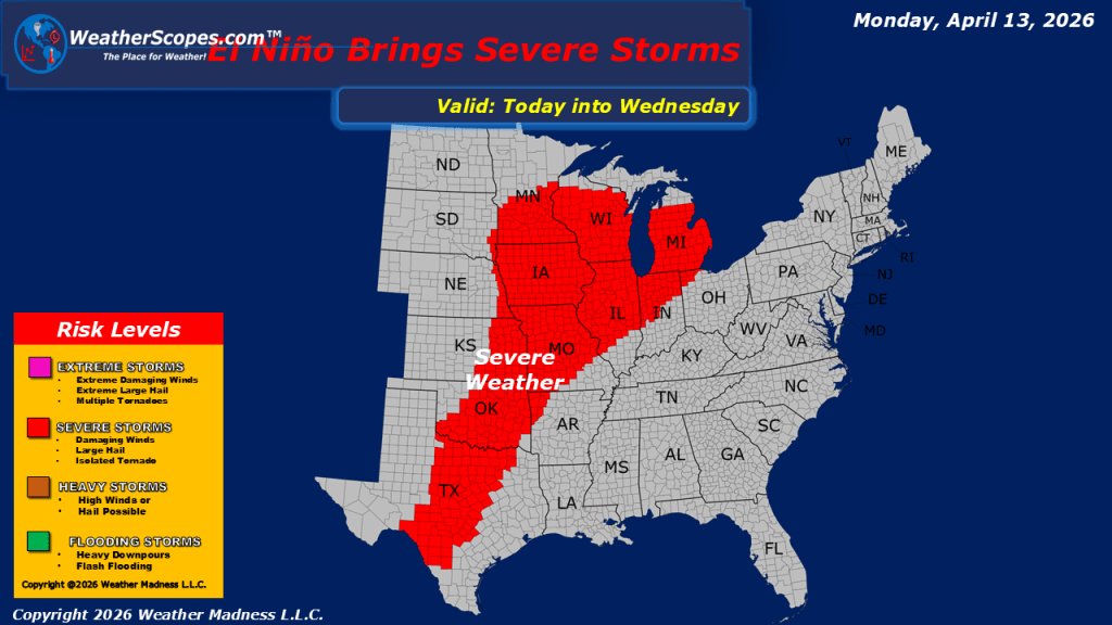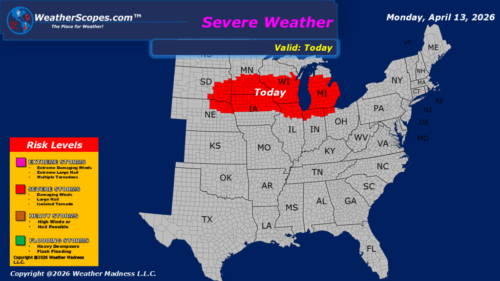 This morning, showers are moving through portions of the Northeast, while additional precipitation is occurring across parts of the Pacific Northwest. In the northern Rockies, colder conditions will support snowfall in the higher elevations throughout the day. Attention then shifts to the Upper Midwest, where conditions are expected to become increasingly favorable for severe weather development later today and into the overnight hours. Areas across Minnesota, northern Wisconsin, and into Michigan may experience strong storms capable of producing gusty winds, hail, and heavy downpours. An isolated tornado cannot be ruled out. This pattern is part of a larger system that will bring multiple days of severe weather potential across the Midwest, extending into the Plains and southern Plains through the week. Residents in these regions should remain attentive to forecast updates as conditions evolve. In the Southwest, showers are expected to develop later tonight, adding to the overall unsettled pattern across the country. In terms of temperatures, much of the central and eastern United States will experience warm conditions today. Cooler, but still relatively mild air will remain in place across portions of the Northeast and northern Plains. Out West, temperatures will trend cooler overall, consistent with the ongoing unsettled conditions in that region.
