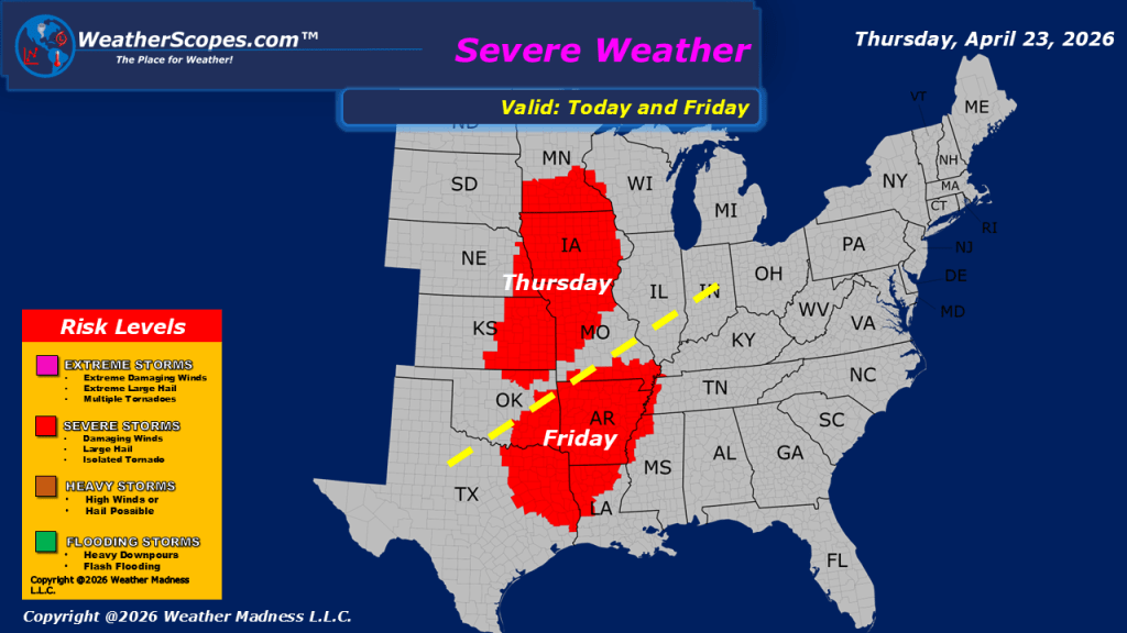 This morning, rain showers are moving through Minnesota and portions of the Northern Plains. In Montana and Wyoming, gusty conditions are expected to persist throughout the day, with wind gusts reaching up to 50 mph. As we head into tonight and into tomorrow, a more organized line of showers and thunderstorms is expected to take shape. These storms will become severe, bringing heavy rainfall, hail, and damaging winds. Additionally, the possibility of a tornado cannot be ruled out, making it important to closely monitor forecasts and warnings. Meanwhile, unsettled weather continues across the western United States. Persistent rain and snow are expected, particularly in higher elevations such as the Rockies and the Sierras. Temperature trends also highlight a contrast across the country. Much of the eastern United States will continue to see mild conditions, offering a more spring-like feel. In contrast, the western regions will remain cooler under the influence of ongoing systems.