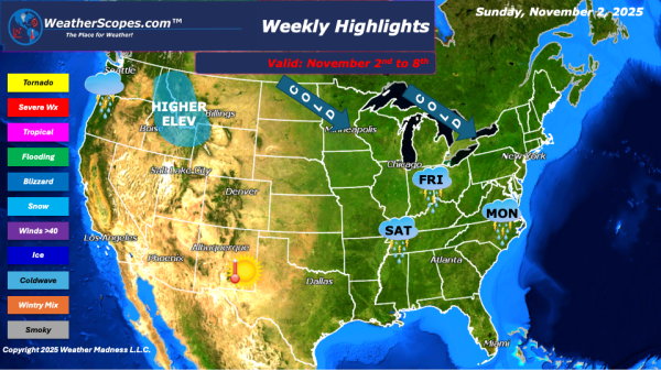 This week, there’s not much going on weather-wise across most of the country, though a few regions will see some unsettled conditions. The overall pattern remains fairly typical for early November, with cooler air spreading across the northern states and lingering mild weather hanging on in the South. Showers and thunderstorms will move through the... Continue Reading →