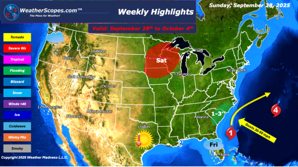 Today rains will move into the Pacific NW and parts of the Southwest. Tropical Storm Imelda has been named and is continuing to track in the Atlantic. Today into Tuesday the Carolina's could see some rain and winds from Imelda. The area could see 1-3'' of rain and some localized flooding. Then Imelda will turn... Continue Reading →