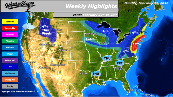 A dynamic and impactful winter pattern is unfolding across the United States this week, highlighted by a major snowstorm expected to affect the Northeast late Sunday into Monday. A huge snowstorm in the Northeast Sunday/Monday from Baltimore and Washington, D.C. northward through New York City and Boston will bring the potential for over a foot of snow, along with blizzard conditions in some... Continue Reading →