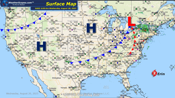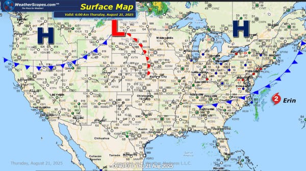 Today we will see some gusty storms across the Plains into the Upper Great Lakes. The Southeast will see some showers and thunderstorms today, will some locally heavy rains. The Four Corners States will also see some showers and thunderstorms today with the monsoonal flow. As Hurricane Erin continues to move to the North in... Continue Reading →