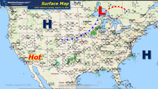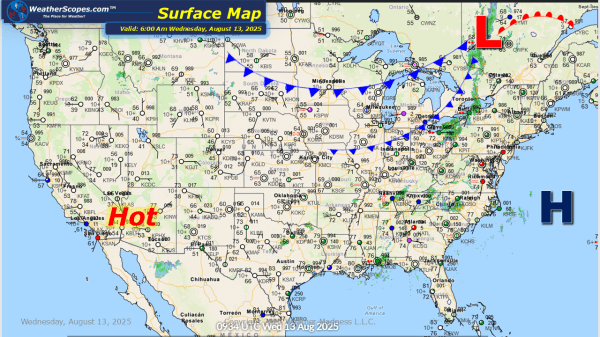 Today some showers and thunderstorms in the Midwest and into the Great Lakes. These storms will bring some gusty conditions and heavy rains. Some localized flooding could be an issue to watch for. The heat and humidity returns to the East today, and continues in the West. The wildfires continue to burn in the West... Continue Reading →