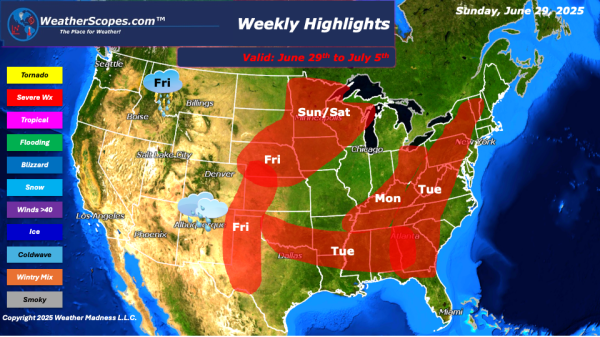This week we will see more of the same warm humid weather in the eastern part of the US with daily chances of showers and thunderstorms, and who should see nice 4th of July weather. Sunday, storms look to develop out across the Plains, the Mid-Atlantic states, and the Upper Great Lakes. Throughout the week with... Continue Reading →