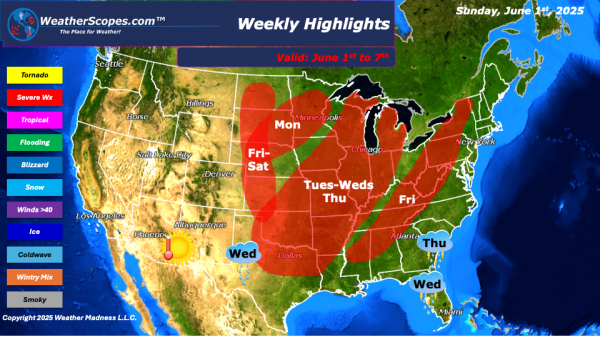 Today we are already seeing showers and thunderstorms move through the Plains into the Midwest. These storms will continue to the east today and extend from parts of WI down into Texas. Strong winds and hail will be the hazards today. A Tornado is not out of the question, and heavy rains will create some... Continue Reading →