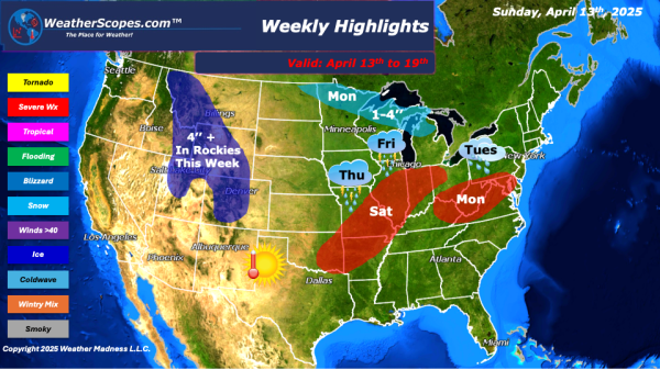 This week we continue to be in a pattern of warm in the West and cool/wet in the East. Monday, some severe weather returns in the Ohio and Tennessee Valley’s, as storms will produce some hail and gusty conditions. The dew points won't be high enough to produce any tornadoes. Also on Monday, portions of the Upper Great... Continue Reading →