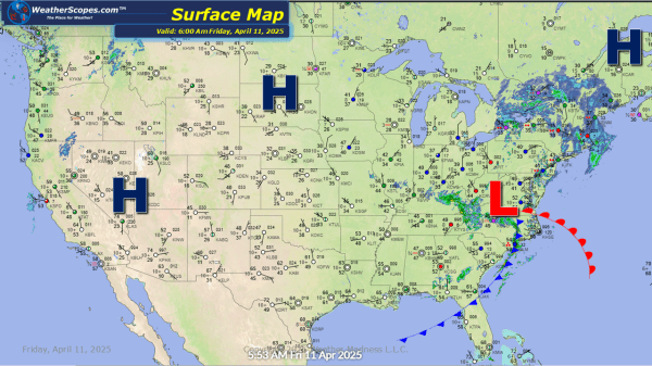 Rain today in the Mid-Atlantic states, as a low develops over the coast. Delaware and NJ could see 1-2'' of rain from this low. Some of that rain will be mixed with snow for parts of the Northeast today, with accumulations around 1''. Milder temps making their return to the Plains and parts of the... Continue Reading →
