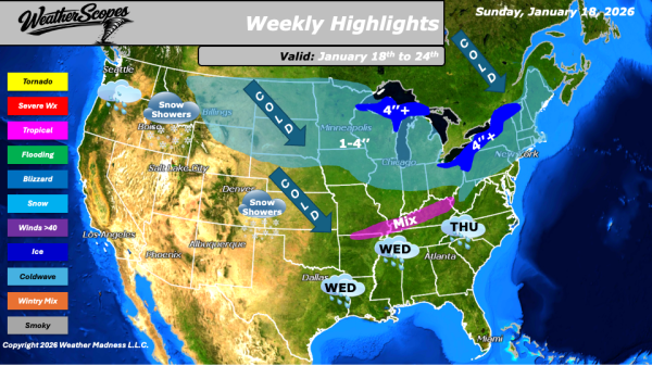 As we move through the week, a persistent winter pattern will dominate much of the United States, bringing widespread cold, periodic snow, and several rounds of unsettled weather. The coldest conditions will be felt across the Northern Plains and Great Lakes, where temperatures will struggle to rise out of the single digits during the day.... Continue Reading →