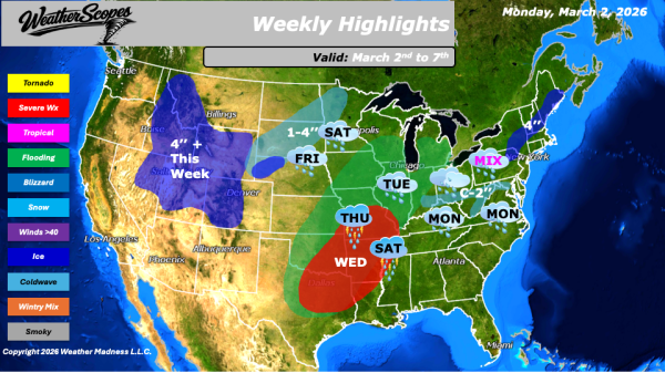 This week will feature an active weather pattern across much of the country, with a mix of rain, snow, and thunderstorms impacting several regions. Monday will start the week with a rain and snow mix across the Tennessee Valley, moving into the Mid-Atlantic states. Accumulations are generally expected to range from a light coating up to 1... Continue Reading →