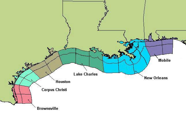 - Waters from Cameron, LA to High Island, TX extending from 20 to 60 nm