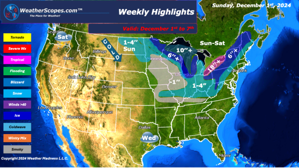 This week starts a new month with the same weather pattern we will continue to see. Cold, cold air coming down from Canada and impacting the Great Lakes, Midwest, and the Northeast. With the cold air coming down we will also see a few days of snow. On Sunday, a clipper will come down from the North into the Great Lakes and the Northeast with accumulations of 1-4’’. The same area will see another round of snow on Wednesday... Continue Reading →